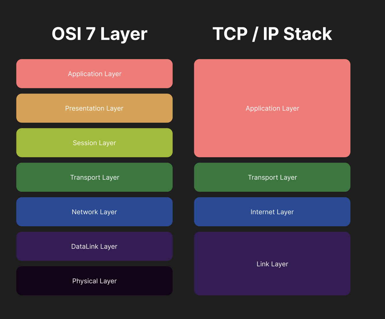 - 애플리케이션 계층: OSI의 L5~L7 통합